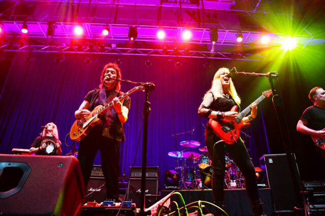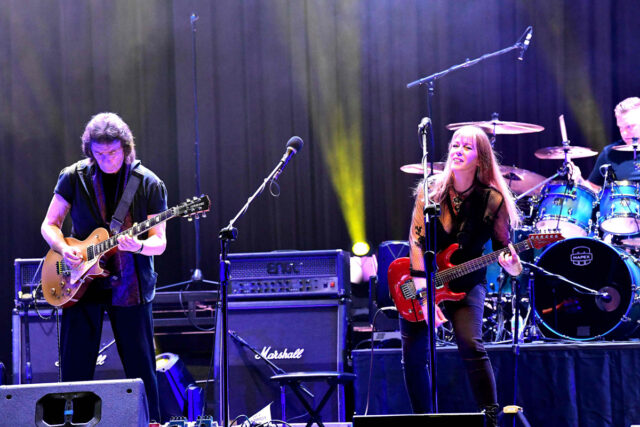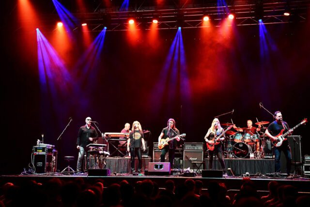 “Genesis Revisited 2025”と題された今回の日本公演では、ジェネシス黄金期のアルバムのなかでもとりわけ傑作の誉れ高い『FOXTROT』(’72年)、2枚組コンセプト作『THE LAMB LIES DOWN ON BROADWAY(邦題:眩惑のブロードウェイ)』(’74年)の2作から選りすぐったナンバーと、ソロの代表作で構成されたステージであることが、予告されていた。ピーター・ガブリエルにせよフィル・コリンズにせよ、ソロではジェネシスと異なる世界観を打ち出したのとは対照的に、ハケットのそれはジェネシスのオリジナリティを継承したものといってよい。だからこうした構成のステージが違和感なく成立するのも、それ自体が彼の個性だ。しかも、ただ継承しているだけではない。そこには、彼自身がジェネシスにもたらした楽曲、コンセプト、ギター・テクニックといったあらゆるものをときどきのやり方で発展させていこうという強い意志が感じられる。’50年ロンドン生まれのハケットは、今年75歳という年齢に達した。けれど、音もルックスも、そんなことなどまるで意識させないのは、彼の気持ちが常に若々しく、ポジティヴな方角を目指しているからにほかならない。アンサンブルを固めるメンバーが、ロジャー・キング(key)、ロブ・タウンゼンド(sax、fl、key、vo)、ナッド・シルヴィアン(vo)、アマンダ・レーマン(g, vo)、ヨナス・レインゴールド(b, g, vo)、クレイグ・ブランデル(dr)という面々であることも、ハケットの意欲の表れとして興味深い。彼らはいずれも、’90年代後半から’00年代くらいにかけてスティーヴ・ハケット・バンドに名を連ねるようになったプレイヤー。プログレッシヴ・ロックはもちろん、ブルース、ジャズ、クラシック、ポップス、フォークなどにも、それぞれ多様なバックグラウンドを持つミュージシャンの集合体は、ひとくちにプログレとはいえそこに複雑な要素を内包する(今では完成されたスタイルと捉えられがちだが、そもそもプログレッシヴ・ロックとはそういう音楽だ)ジェネシスの再演ナンバーやハケットの初期ソロ・ナンバーを取り上げるうえでも、それらの面々が直接オリジナルの録音に参加した近年の楽曲を取り上げるうえでも、最良の人選といえよう。10年の来日公演で様々な意味のある存在感を放っていたアマンダが、15年ぶりのステージ参加というのも見逃せない。日本公演は、4月23日のスウェーデン・オスロから5月16日のオランダ・ティルブルフまで14か所を回る欧州ツアーに続いてのステージとなる。