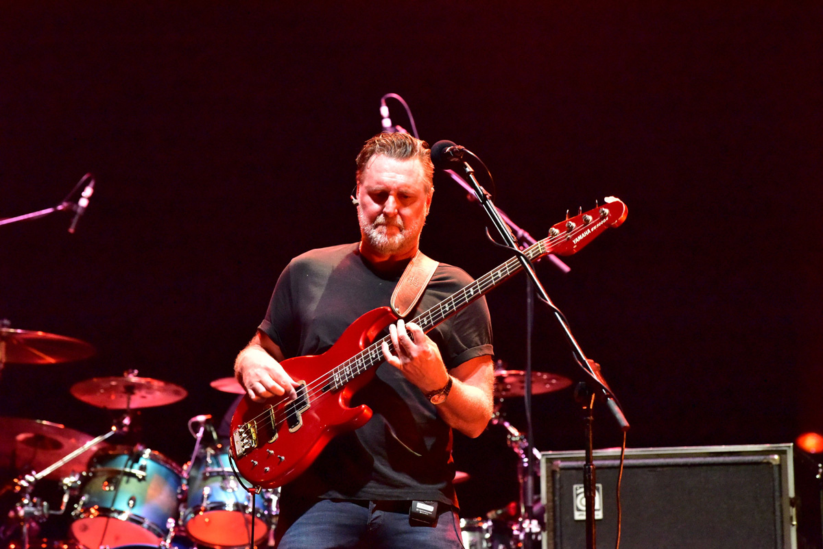 そしてステージの後半は、いよいよジェネシスのナンバー。前半のソロ・ナンバーがあまりに素晴らしかっただけに、かえってこちらが見劣りしてしまうなどということはもちろんなく、こちらはこちらで、オリジナルのテイストを絶妙に残しつつもそこかしこにアップデートを施すなど、良質の仕上がりを見せていた。『THE LAMB〜』から取り上げられたのは全部で9曲。これは、コンセプト・アルバムのストーリー性を維持するのにも有効な数だった。オープニングに「The Lamb Lies Down On Broadway」、ラストに「It」を配するなど、構成もしっかりと計算されている。一方の『FOXTROT』からは「Supper’s Ready」のみだったが、この曲自体が7部構成で20分超の大作。これをフルコーラスで、しかも高い集中力で演奏し切るだけでも凄まじいのだが、そのなかでやはりアレンジの改変を試みたり、ギター・ソロに変化をつけたりしながら、なおかつ作品の質を損なわないところがハケットの魅力である。
