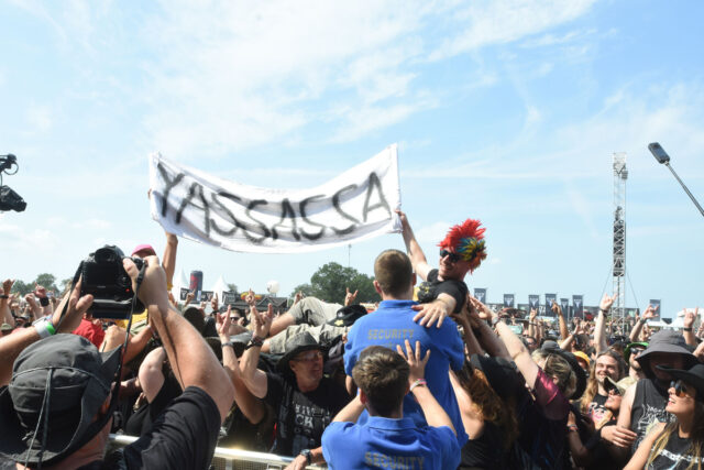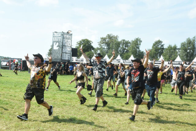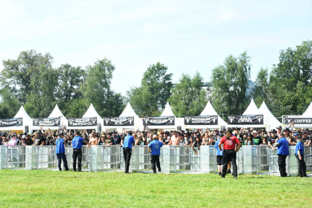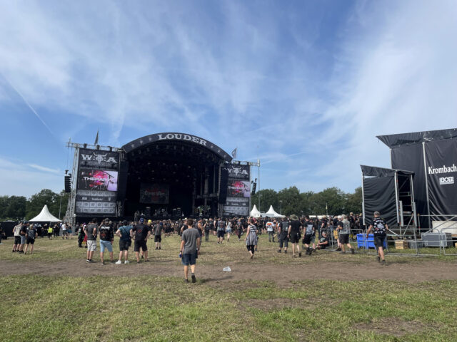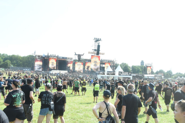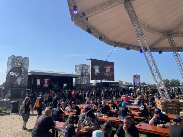 この日、まず向かったのは、ファスター&ハーダーと名付けられたダブル・メイン・ステージを左に見ながらヴァッケン・センターを進んでいった先にあるラウダー・ステージ。メインの次に大きいサブ・ステージ、あるいはセカンド・ステージだが、手前にビア・ガーデンがあって、お昼前からもうかなりの観客が集まっている。