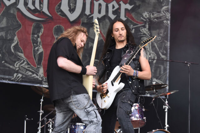 ここでトップを飾るのは、ポーランドの王道メタラー:クリスタル・ヴァイパー。元々はツイン・ギター編成の5人組だったが、’23年より専任ベーシスト不在となり、以降は女傑シンガーのマルタ・ガブリエルが兼任して活動を続けている。そういえば、ギター・チームの片割れもこの年に交代。’06年加入とごく初期から在籍するアンディ・ウェイヴの相棒には、イタリア出身のジュゼッペ・タオルミナが迎えられていた。
