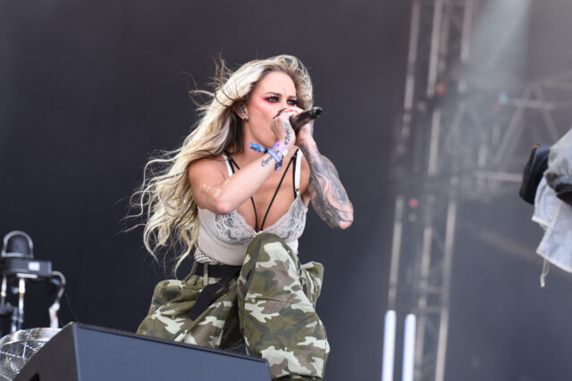重くグルーヴィなサウンド、ヘンリー・フルーリーの野太く唸る8弦ギター、そして、グロウルからスクリーム、クリーンまでを自在にコナすハイディのマルチっぷりに、万単位の大観衆が大きく揺れ、小規模ながらモッシュ・ピットも発生。ショウ序盤から、「私ひとりでやってみせる…!」と言わんばかりのハイディの覚悟の強さに圧倒されっ放しだった。