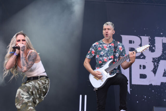 続いてラウダー・ステージに登場したのは、ブッチャー・ベイビーズ! 女性ツイン・ヴォーカルの5人組…だが、何とWOA出演直前にその片割れ:カーラ・ハーヴェイの脱退をアナウンス。後任やいかに…? もしや、ゲスト・シンガーを起用? …なんて思っていたら、何とハイディ・シェパードがひとりですべてをコナしていてビックリ! しかも、これがカーラ脱退後、2回目か3回目のショウだったにもかかわらず、その不在をあまり感じさせないぐらい、ハイディの大奮闘には目を見張るモノがあった。