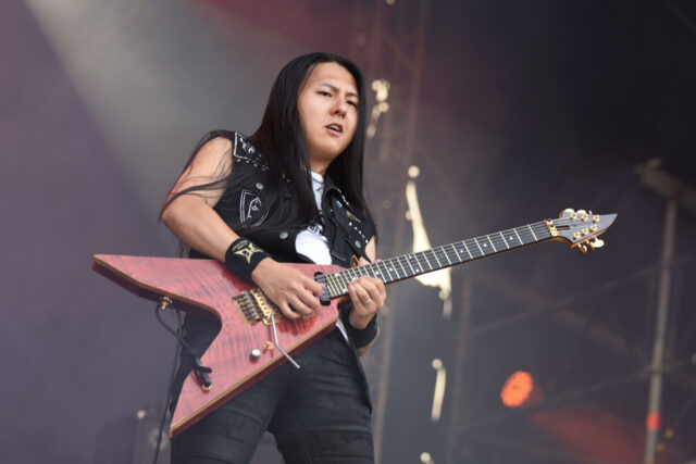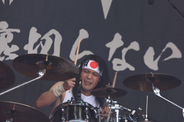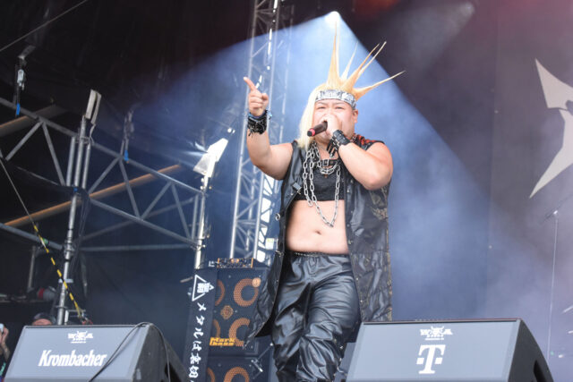 驚いたのはその大人気っぷり。最前列付近には、日本から駆け付けた熱狂的ファンの姿もあったが、当然ながら観客の9割以上が現地民+世界各国からやって来たヴァッケナーで、そこには軽く1万人以上が集結していたのだ。しかも、その多くがバンドTを着たり、“メタルは裏切らない”とか“YASSASSA”とプリントされたタオルを掲げていて、「みんなどこで買ったの…?」「もしかして現地でサクラを5千人雇った?(笑)」状態。いやはや彼等は、普通に人気バンドになっていたのである。