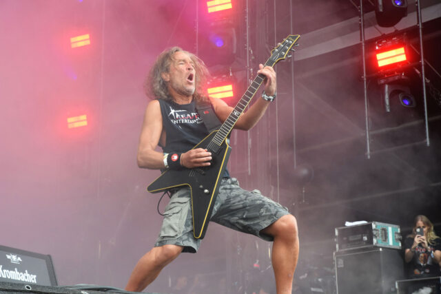 ベテラン・スラッシャーの彼等は、事前に“スペシャル・オールドスクール・セット”をやるとアナウンス。実際、デビュー作『DOOMSDAY FOR THE DECEIVER』(’86年)冒頭曲「Hammerhead」で幕開けたショウは、セカンド『NO PLACE FOR DISGRACE』(’88年)からのナンバーも含め、確かに初期レパートリーのみで組み立てられていた。