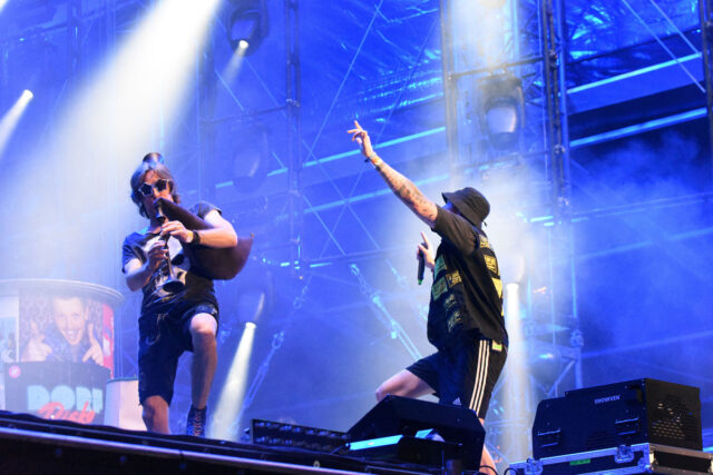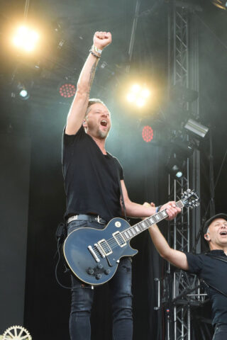 ’26年にアルバム・デビュー40周年を迎える彼等は、“Special Fruhschoppen Show”と銘打って11時半に演奏をスタート。“フリューショッペン”とはバイエルン地方における“ブランチでの朝呑み”で、要は「昼前から呑んで騒ぐぜ!」ということ。例年、最終日の朝イチ(もう正午に近い時間だが)は、みんな二日酔いで…というか、もはや三日酔い、四日酔いのためか観客少なめなのだが、既にファスター前には軽く数万人はいたように見える。