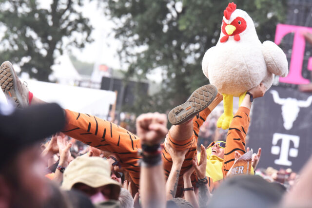 ただ、メイン・ステージでの“次”に備えて、3曲ほどでインフィールドへ戻ることに。聞けば終盤には、トビアス・ハインドル(vln)がゴムボートに乗って観客という大海原へ漕ぎ出す(=ボートでクラウドサーフ)サプライズもあったそうで──生で観たかったな〜。