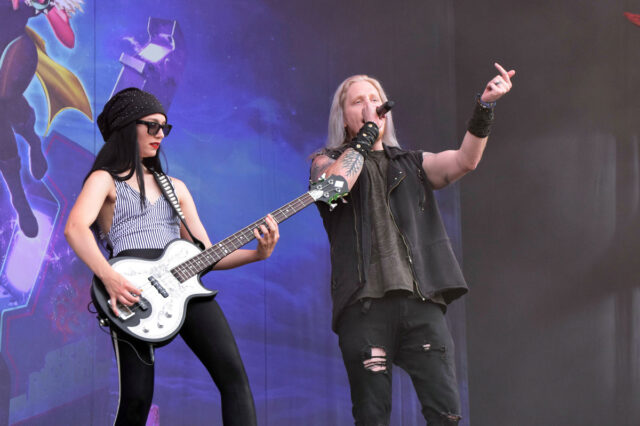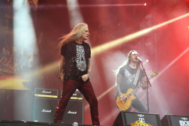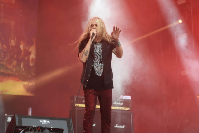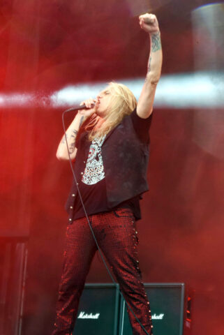 これがWOA初見参となるセバスチャンは、スキッド・ロウ時代のデビュー35周年を祝い、そのファースト・アルバム『SKID ROW』(’89年)収録曲をたっぷりやると事前にアナウンス。ショウ1曲目は最新ソロ作『CHILD WITHIN THE MAN』(’24年)から「What Do I Got To Lose?」で、2曲目には早くもセカンド『SLAVE TO THE GRIND』(’91年)表題曲が飛び出すも、以降は『SKID ROW』からたっぷり披露! となれば、雨だろうが何だろうが盛り上がるしかない。