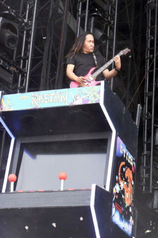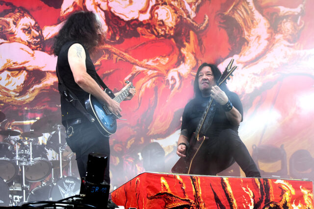 セトリ全体を初期2作──『THE LEGACY』(’87年)と『THE NEW ORDER』(’88年)からの曲だけで構成していた作戦も功を奏し、終始クラウド・サーフが止まらず、モッシュにサークルにヘドバンに…と、推定4万人以上がガッツリ暴れまくる様は、何とも凄まじいモノがあった。’22年からドラマーを務めている現在26歳のクリス・ドヴァス(正式メンバーになったのは’23年)については、あまり個性を出すことなくバンド・プレイに徹していたことに、むしろ好感を持ったというファンもいただろうか。ただショウ中間部には、短いながらもドラム・ソロの時間をもらっていたので、スゴ腕だということは強烈な印象と共に伝わったハズだが。
