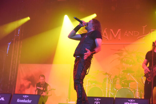 盛り上がるタンカードをあとにし、早々にラウダー・ステージへ移動。よって、最後の曲「(Empty) Tankard」(’86年『ZOMBIE ATTACK』収録)でのザビーナ・クラッセン(vo:ホーリー・モーゼス)の飛び入りを見逃してしまったが、ラウダーの一発目がフィドラーズ・グリーンとくれば、駆け付けないワケにいかない…!