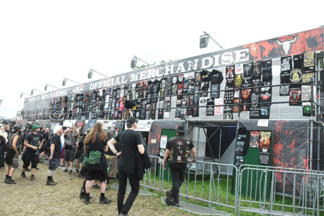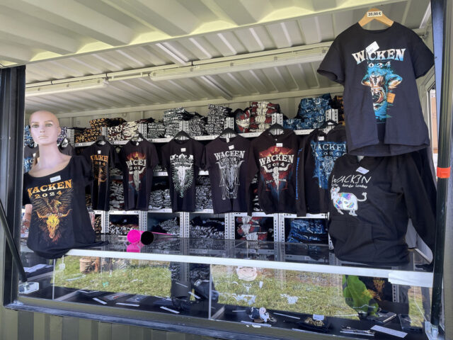 バンドTは、WOA限定デザインを売るバンドもいて、出演日にしか買えないこともあるから要注意。大半が30〜35ユーロで、もうちょい安く売るバンドもあれば、1枚50ユーロとかそれ以上…というバンドも。しかし、買おうかどうしようか迷っていたら、早々に売り切れてしまうことも少なくない。あと、フェスTは色んなデザインがあり(下記写真はその一部!)、やはり中心価格帯は30〜35ユーロで、これも人気のデザインは、金曜日にはもう在庫切れになっていた。