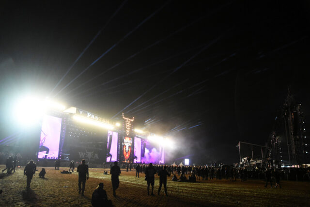アモン終演後、ファスター・ステージにて主催者から観客に向けての謝辞があり、’25年に出演が決定した最初の34バンド(第34回に合わせて)の発表が、何とも壮大に行なわれる。この年は、メイン・ステージ周りの巨大スクリーンすべてを使って、派手な照明やパイロを駆使し、スペシャル・アナウンスメント・ムービーが流され、一部生パフォーマンスもあって、さらには大規模なドローン・ショウも。それらは年々豪華になっていってるような。